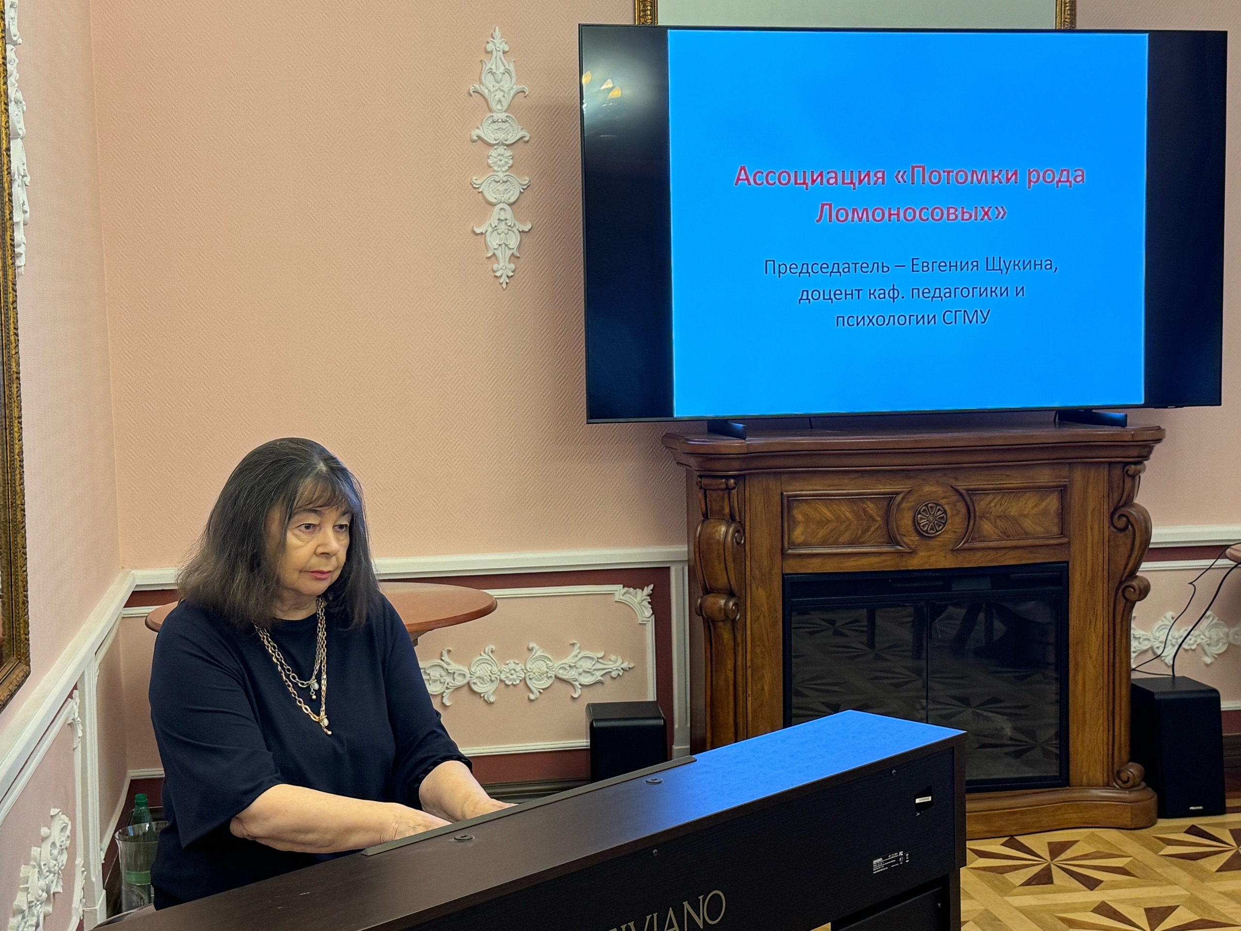 На этом заседании ведущая, проф. Воробьева Надежда Александровна объявила тему «Ассоциация «Потомки рода Ломоносовы в преддверии юбилея» и передала слово председателю Ассоциации доц. Щукиной Евгении Георгиевне.